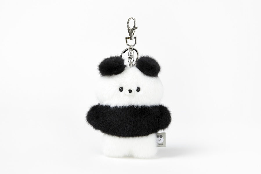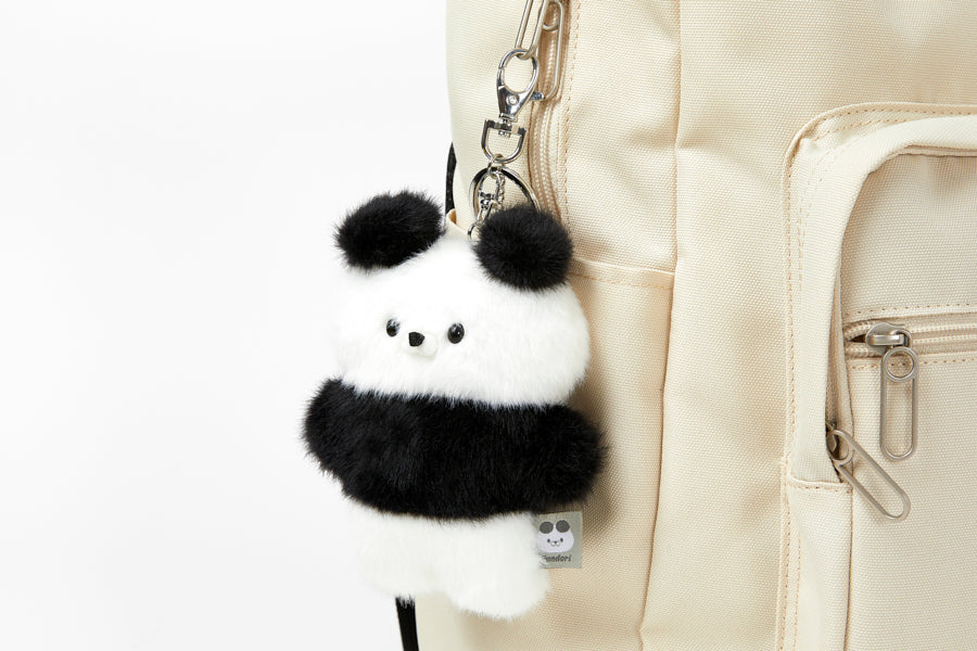 This fluffy panda keychain captures both charm and playfulness — a gentle friend with a hint of mischief in its expression.