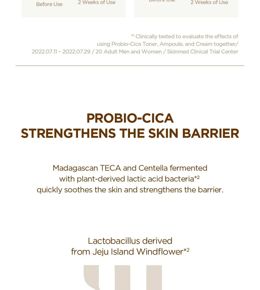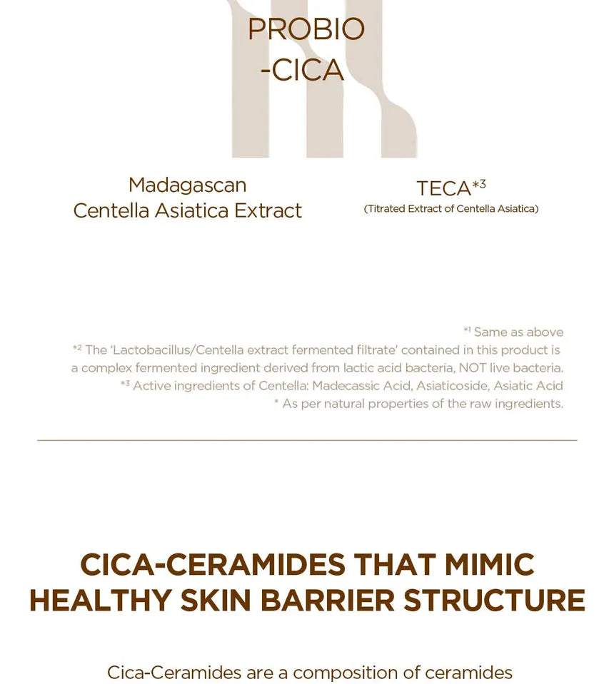 - Contains Centella Asiatica extract, an ingredient that effectively soothes the skin, and vegan ProBio-Cica (Centella fermented with TECA), providing care for weak and sensitive skin barrier.