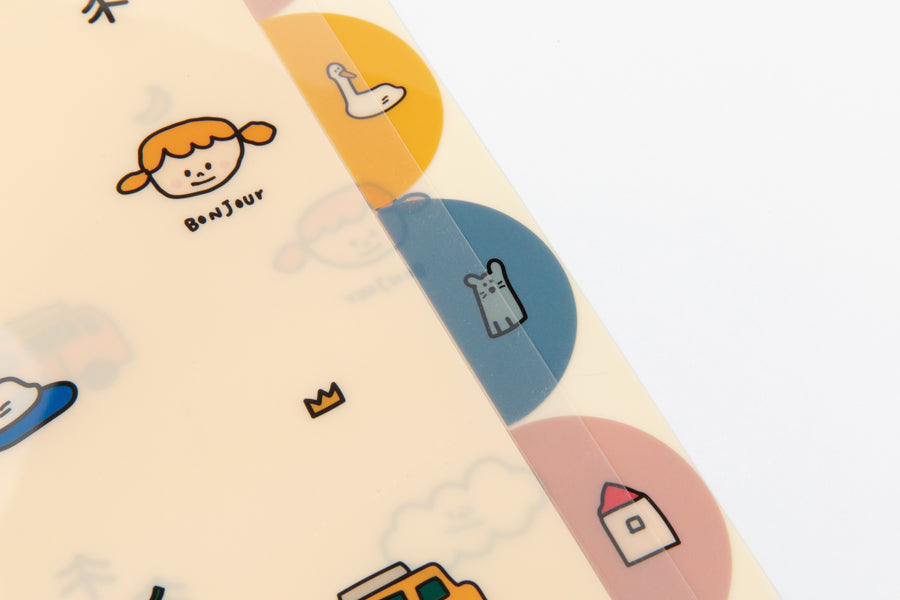 The five-pocket file allows you to divide documents by item and keep them.