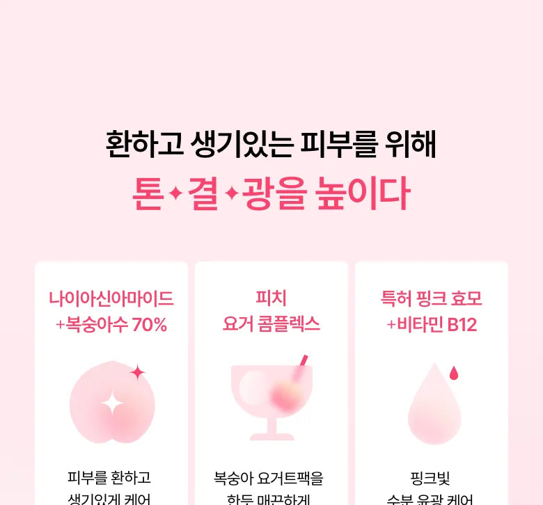 Water, Glycerin, Methylpropanediol, Niacinamide, 1,2-Hexanediol, Lactobacillus Ferment, Phellinus Linteus Extract, Hydrolyzed Hyaluronic Acid, Althaea Rosea Flower Extract, Camellia Sinensis Seed Oil, Yeast Ferment Extract, Salvia Hispanica Seed Oil, Prunus Persica (Peach) Flower Extract, Hyaluronic Acid, Sodium Hyaluronate, Hydroxyacetophenone, Butylene Glycol, Allantoin, Tromethamine, Polyglyceryl-10 Isostearate, Polyglyceryl-10 Oleate, Sodium Phytate, Cyanocobalamin, Ethylhexylglycerin, Panthenol, Caprylic/Capric Triglyceride, Betaine Salicylate, Hydrogenated Lecithin, Linoleic Acid, Linolenic Acid, Sucrose Palmitate, Ceramide NP, Carbomer, Fragrance(Parfum), Cynanchum Atratum Extract, Polypropanediol, Rapeseedate Ferment, Candida Bombicola/Glucose/Methyl, Propanediol, Fragrance, Prunus Persica (Peach) Fruit Water, Xanthan Gum, Carthamus Tinctorius (Safflower) Seed Oil, Vincetoxicum Atratum Extract, Prunus Persica (Peach) Fruit Extract(70%), Safflower Seed Oil, Candida Bombicola/Glucose/Methyl Rapeseedate Ferment