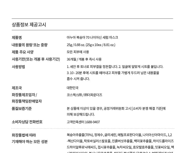 - A moisturizing sheet mask formulated with Niacinamide and Prunus Persica (Peach) Fruit Extract to offer brightening, smoothing and nourishing effects.