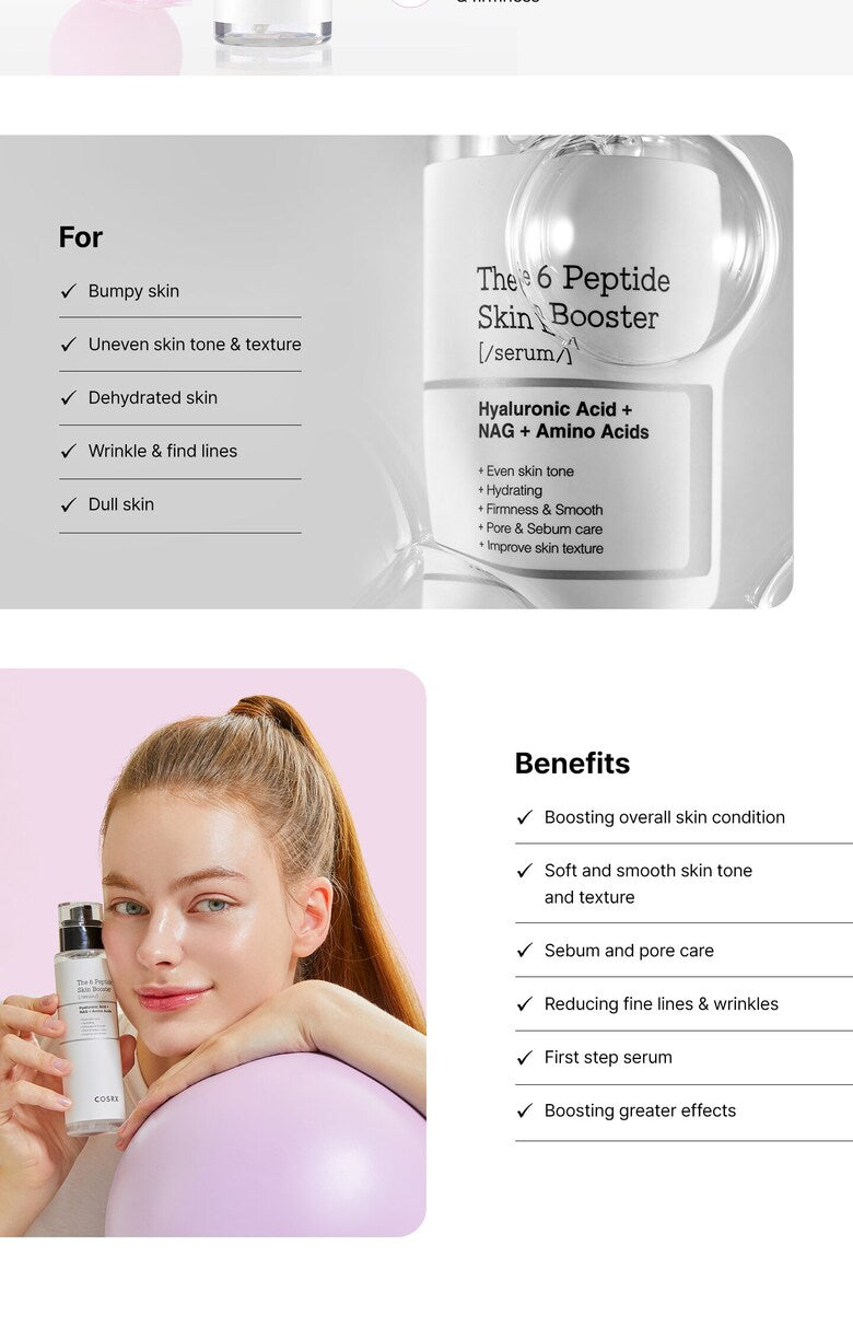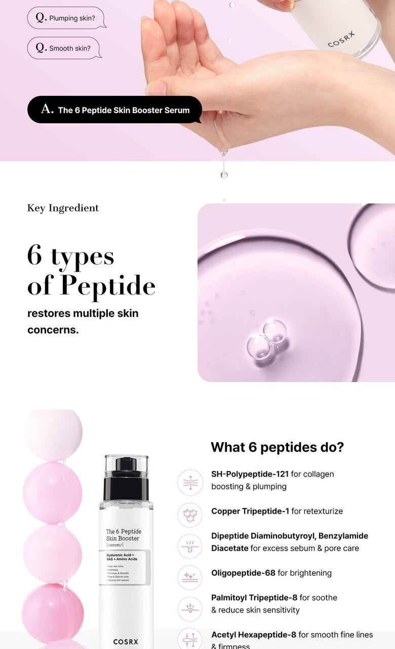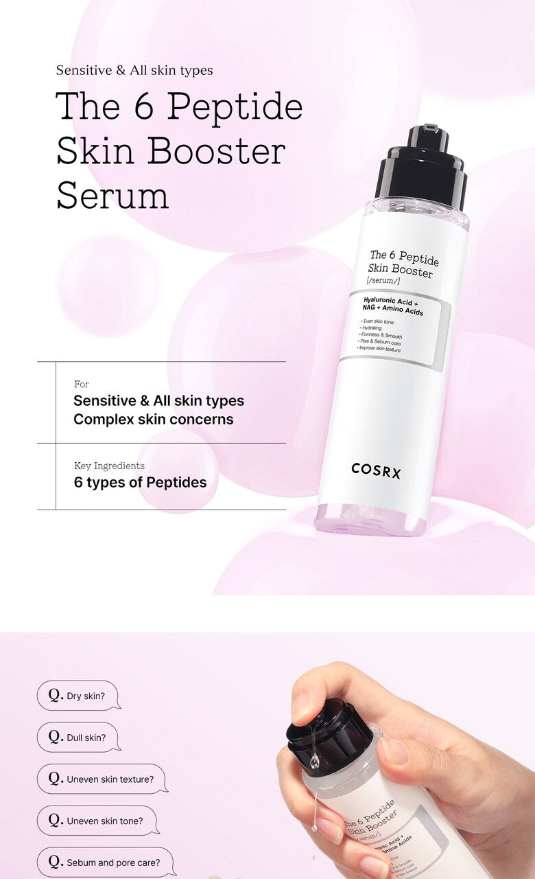 Experience the benefits of COSRX's 6 Peptide Skin Booster serum for softer, clearer, and more youthful-looking skin.