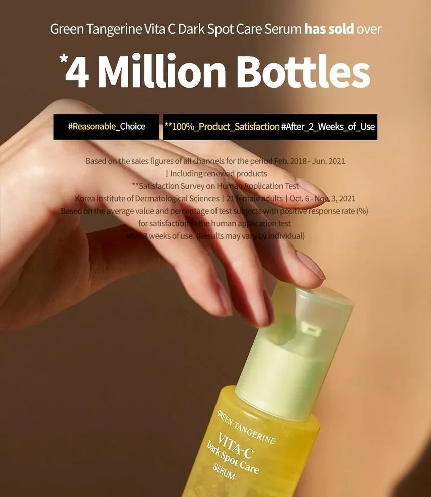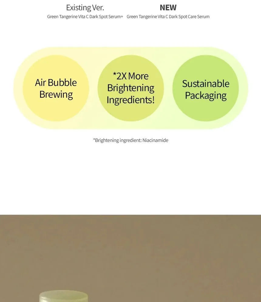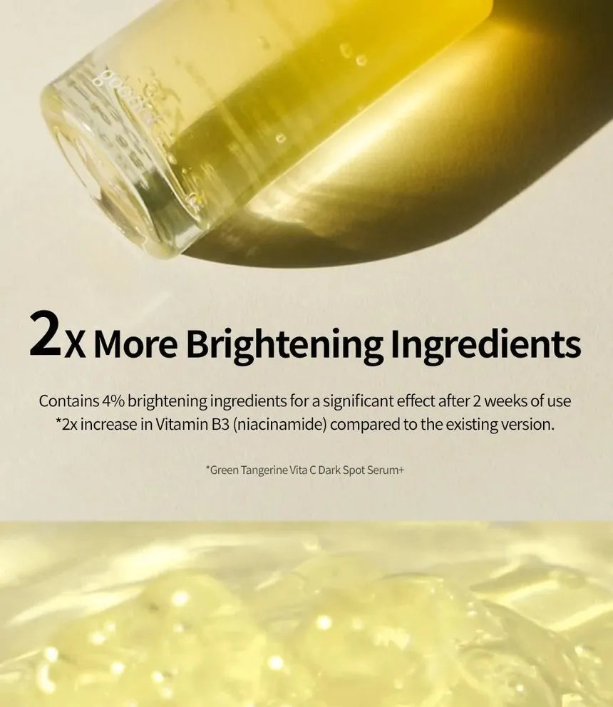 - The upgraded version of Green Tangerine Vita C Dark Spot Serum, offers 10 times upgraded Vita C brightening effect than before.