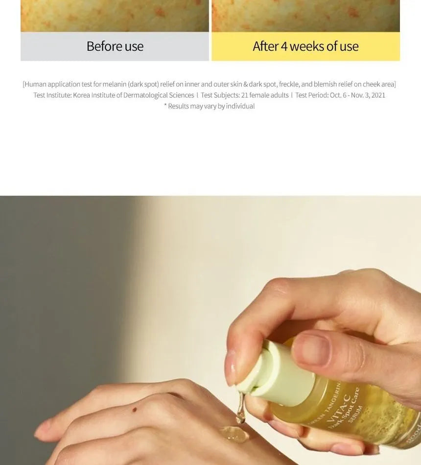 - A serum formulated with green tangerine extract to improving dark spot and freckles.