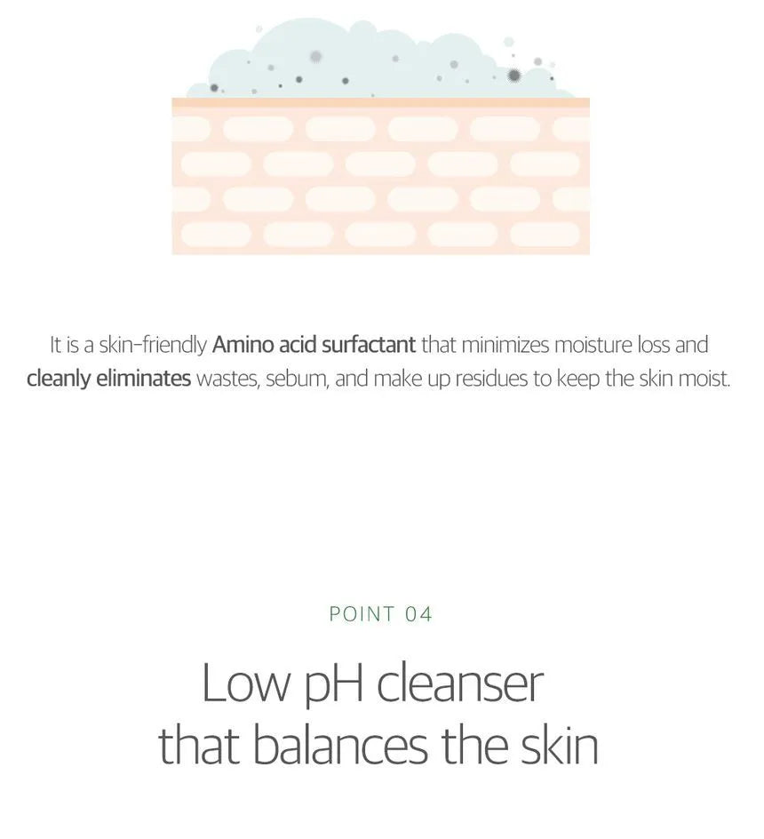 - Amino Acid cleansing with low pH value that gently cleanse skin while keeping skin balanced.