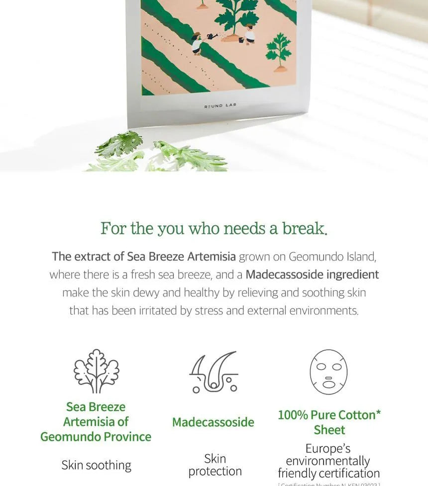 - A mask sheet infused with Mugwort extract and Madecassoside which effectively moisturizes and soothes irritated skin for a healthier complexion.