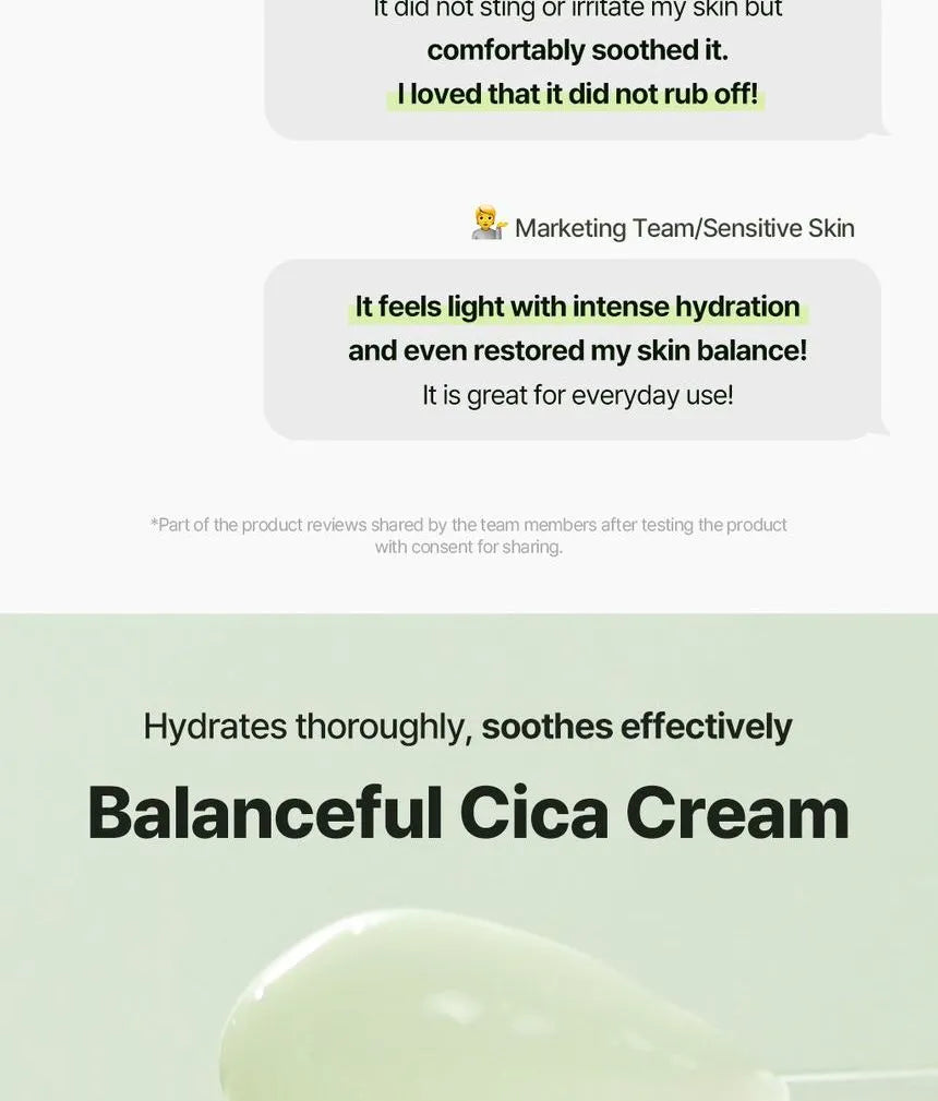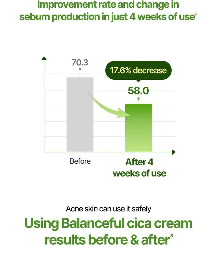This lightweight cream effectively soothes and repairs damaged skin with the power of five types of Cica ingredients. It also controls and relieves excessive sebum production, making it suitable for acne-prone skin. Tested and proven to offer mild yet powerful calming effects.