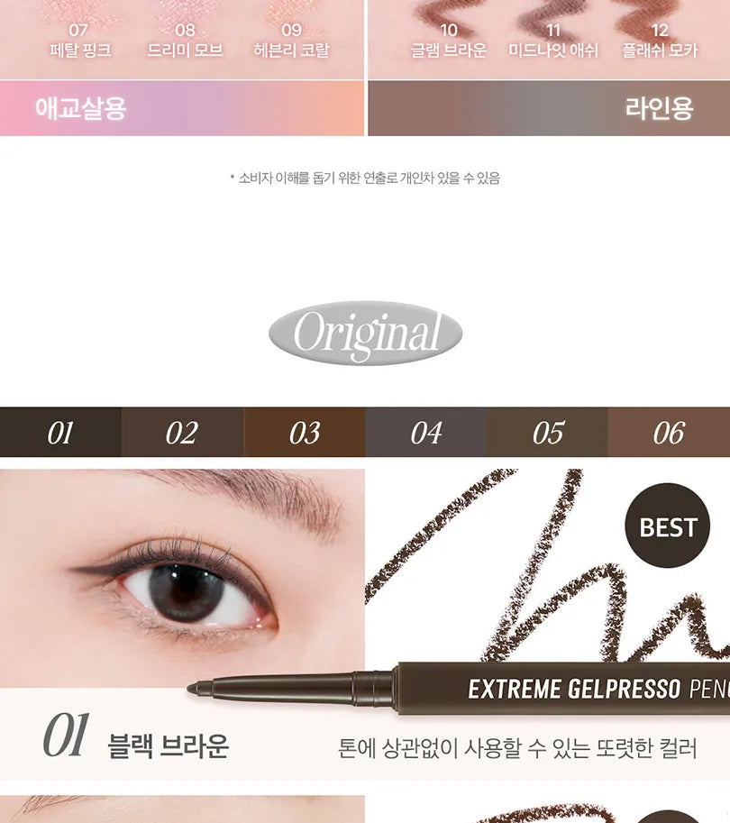 - This eyeliner comes in 12 colors, allowing you to create a delicate eyeline.