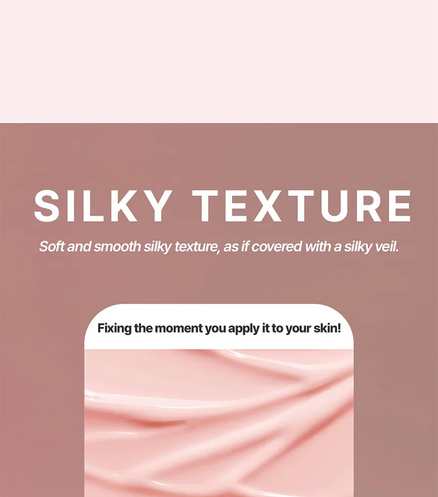 Dimethicone, Water, Cyclopentasiloxane, Butylene Glycol, Dimethicone/Vinyl Dimethicone Crosspolymer, Methyl Methacrylate Crosspolymer, Cyclohexasiloxane, Dimethicone Crosspolymer, Phenyl Trimethicone, PEG-10 Dimethicone, Magnesium Sulfate, Cetyl PEG/PPG-10/1 Dimethicone, Caprylyl Glycol, Polymethylsilsesquioxane, Vinyl Dimethicone/Methicone Silsesquioxane Crosspolymer, Titanium Dioxide (CI 77891), Silica Silylate, Synthetic Beeswax, Ethylhexylglycerin, Fragrance, 1,2-Hexanediol, Prunus Serrulata Flower Extract, Trisodium Ethylenediamine Disuccinate, Nelumbo Nucifera Flower Extract, Iron Oxides (CI 77491), Aluminum Hydroxide, Triethoxycaprylylsilane, Iron Oxides (CI 77492), Glycine, Serine, Glutamic Acid, Sodium Hyaluronate, Aspartic Acid, Leucine, Alanine, Lysine, Arginine, Tyrosine, Phenylalanine, Proline, Prunus Persica (Peach) Flower Extract, Threonine, Valine, Isoleucine, Histidine, Cysteine, Methionine, Allantoin, Centella Asiatica Extract, Centella Asiatica Leaf Extract, Centella Asiatica Root Extract, Polyglutamic Acid, Pinus Pinaster Bark Extract, Hyaluronic Acid, Hydrolyzed Hyaluronic Acid, Hydroxypropyltrimonium Hyaluronate, Hydrolyzed Sodium Hyaluronate, Potassium Hyaluronate, Sodium Hyaluronate Crosspolymer, Pentylene Glycol, Asiaticoside, Madecassic Acid, Sodium Acetylated Hyaluronate