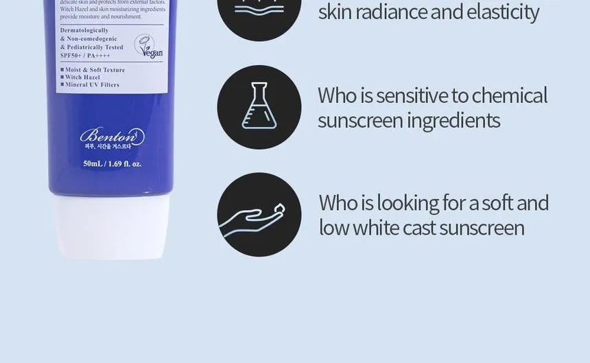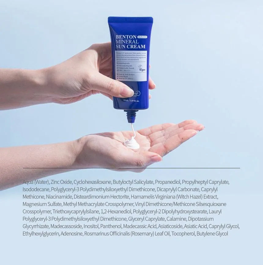 - A physical sunscreen features a broad spectrum SPF50+ PA++++ with certification from clinical test organization in Europe that helps protect the skin from UV rays.