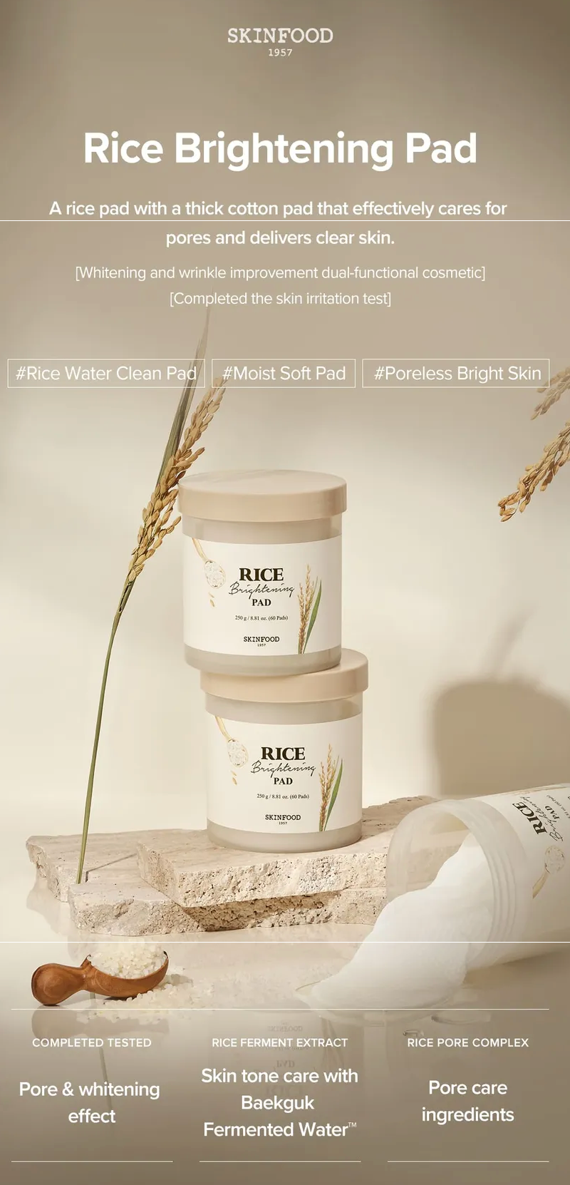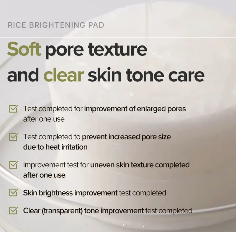 - A brightening rice pad soaked in essence effectively delivers moisture to sagging pores and creates a clear and transparent complexion.