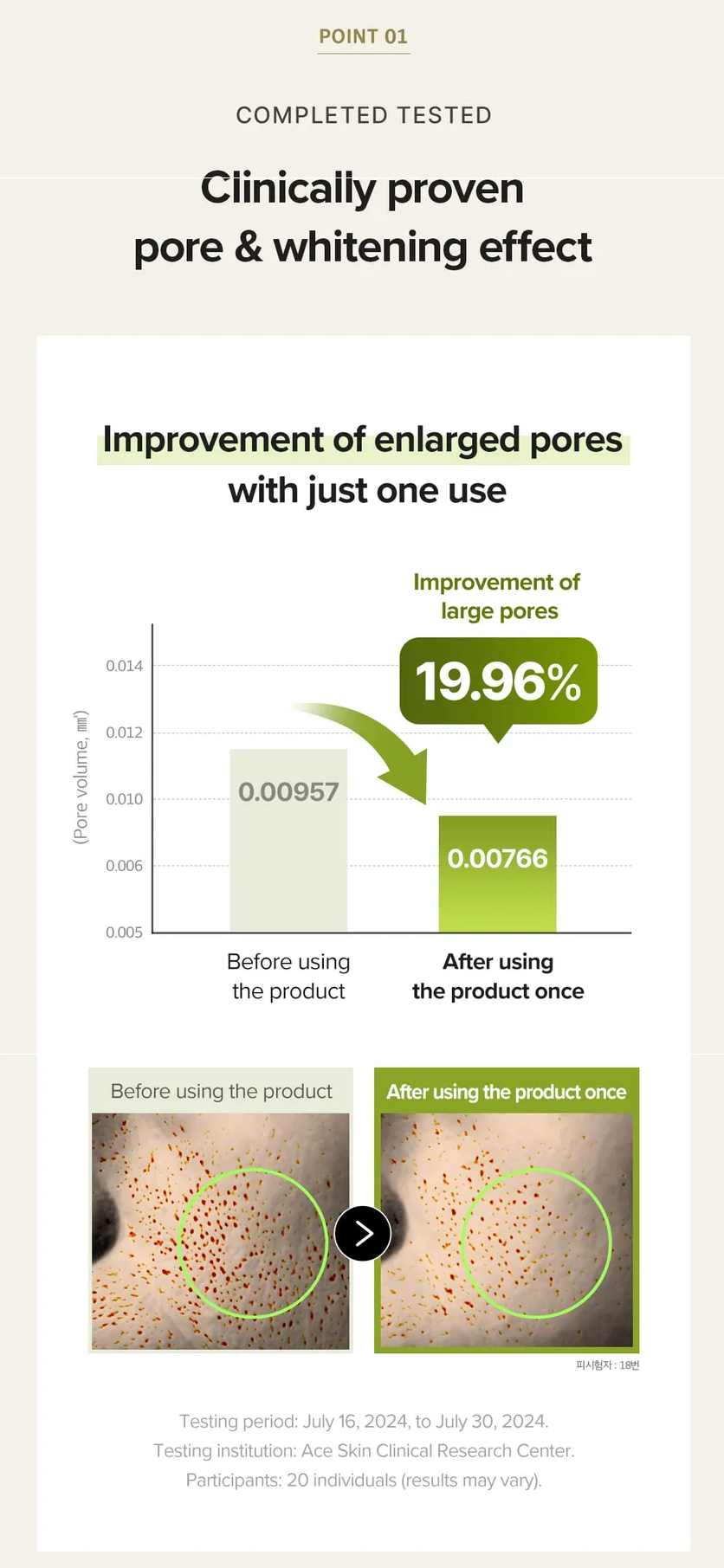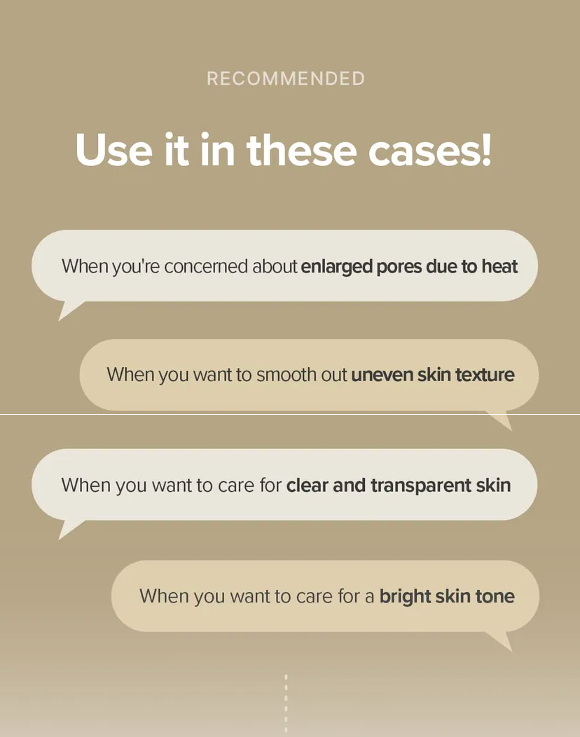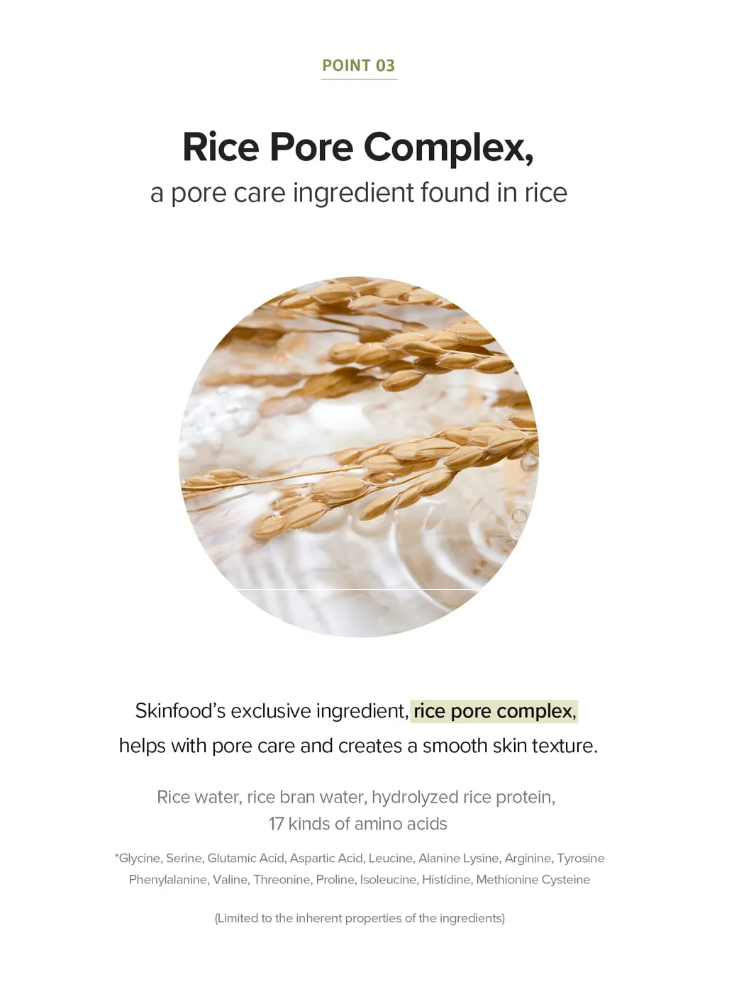 - Enriched with Rice Pore Complex to improve skin elasticity and enlarged pores for smoother skin.