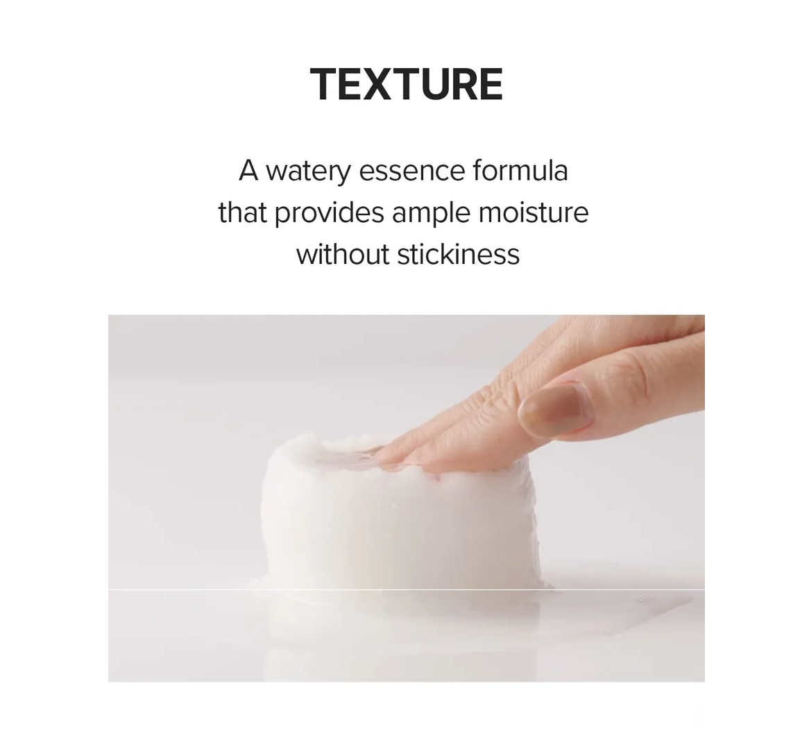 - With a watery essence formula that fills the skin with moisture without stickiness.