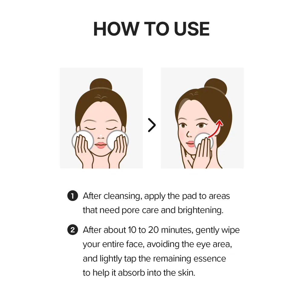 1. After cleansing, apply the pad to areas that need more care and brightening.