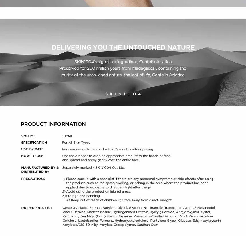 Water(Aqua), Butylene Glycol, Niacinamide, Glycerin, Tranexamic Acid, 1,2-Hexanediol, Betaine, Centella Asiatica Extract, Zea Mays (Corn) Starch, Xanthan Gum, Microcrystalline Cellulose, Mannitol, Panthenol, Pentylene Glycol, Ethylhexylglycerin, Hydroxyethylcellulose, Madecassoside, Acrylates/ C10-30 Alkyl Acrylate Crosspolymer, Arginine, Hydrogenated Lecithin, Xylitylglucoside, Anhydroxylitol, Xylitol, Glucose, 3-O-Ethyl Ascorbic Acid, Lactobacillus Ferment