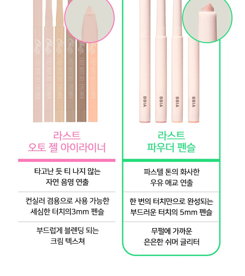 Multi-use pencil: for aegyo sal, eyeliner, and shadow.