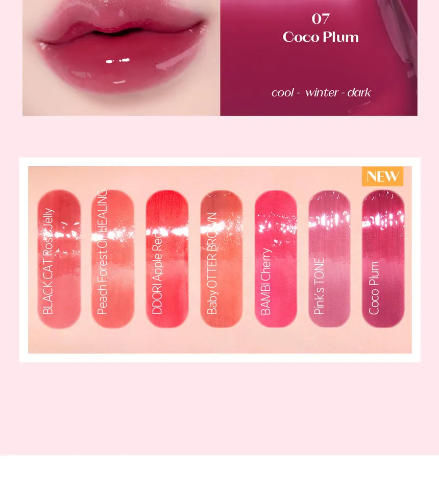 A brand-new vegan lip tint comes in 7 colors, offers a high glossy finish dewy-looking lips.