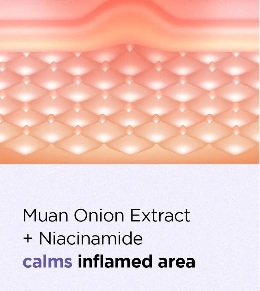 - Formulated with Muan Onion Extract and Niacinamide to calm inflamed area to speed up the healing process.