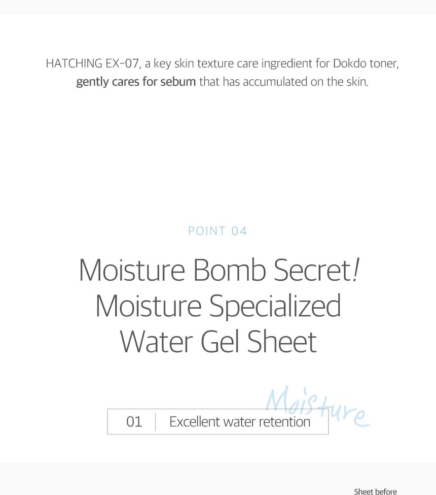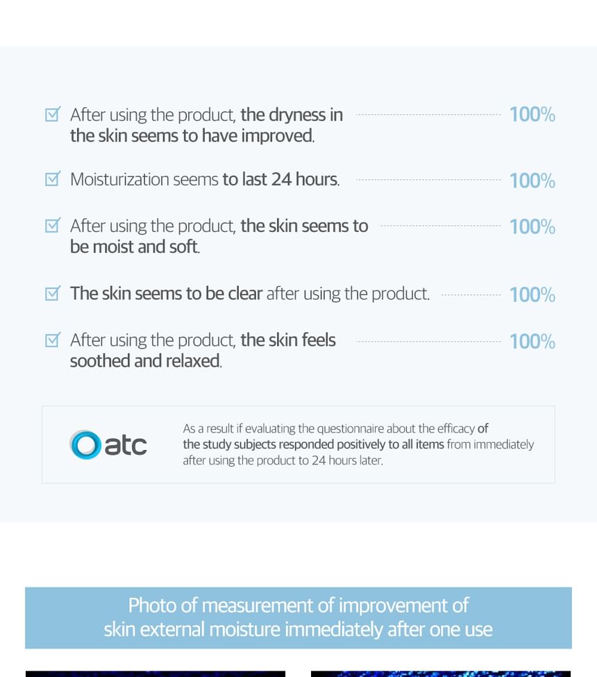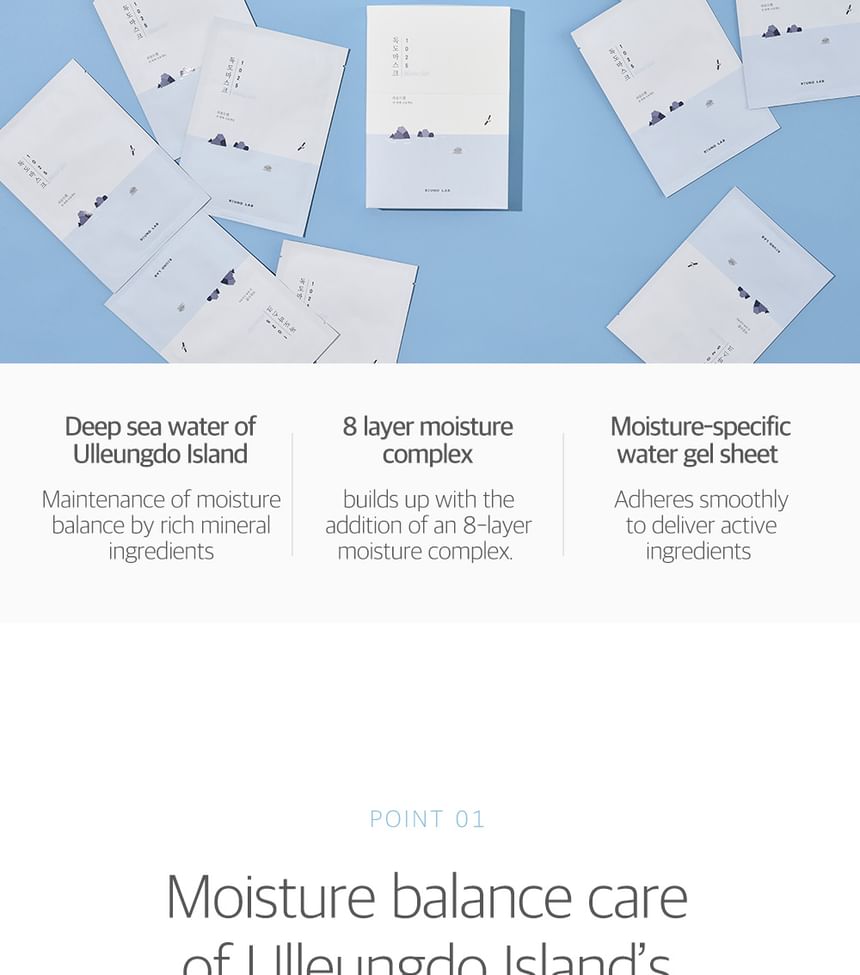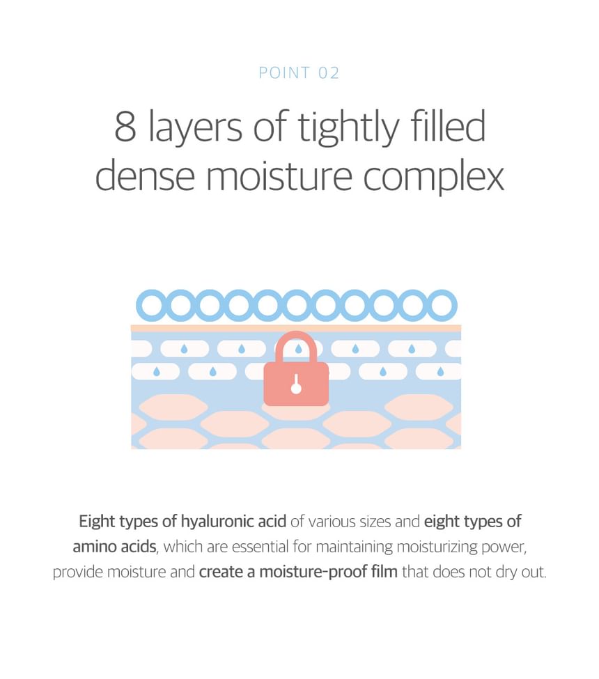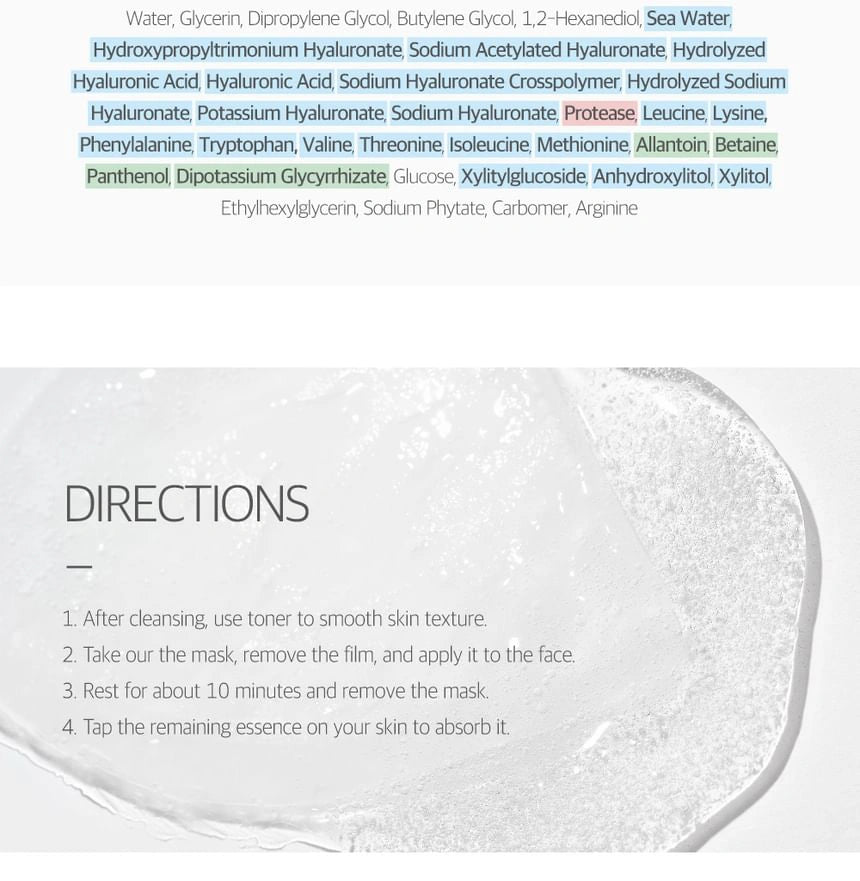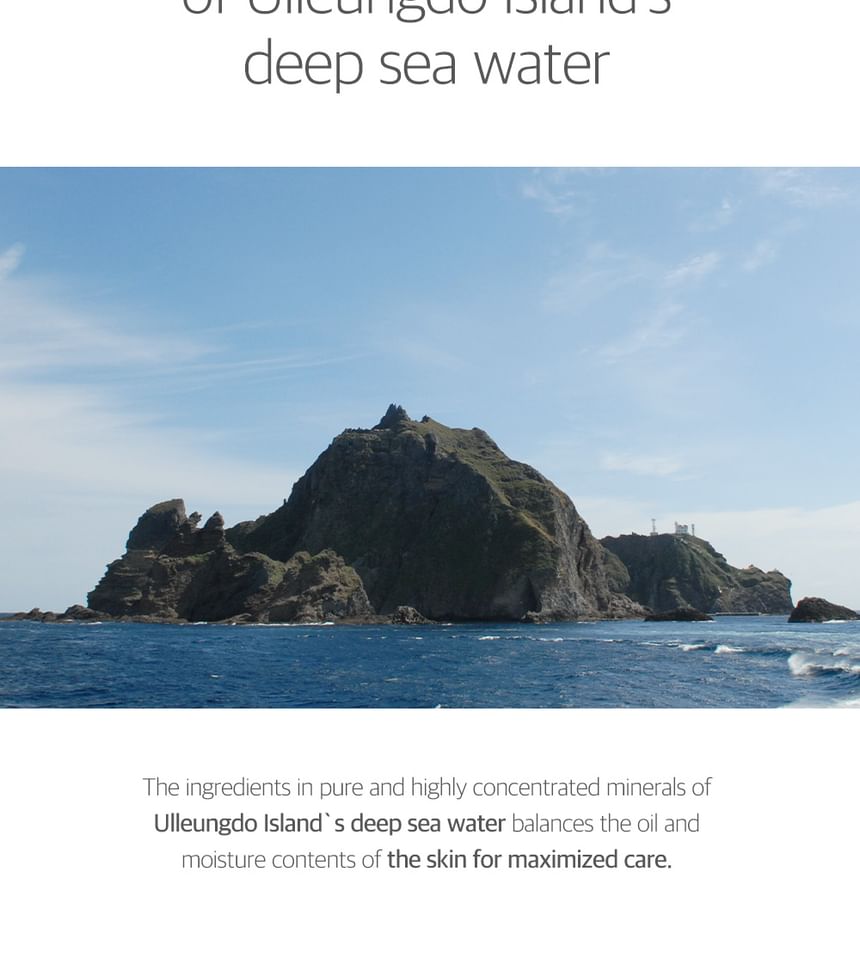 - Contains Ulleungdo Island's deep sea water which is rich in minerals and 8 types of Hyaluronic Acid and Amino Acid to help moisturize and lock in moisture by creating a protective film on skin.