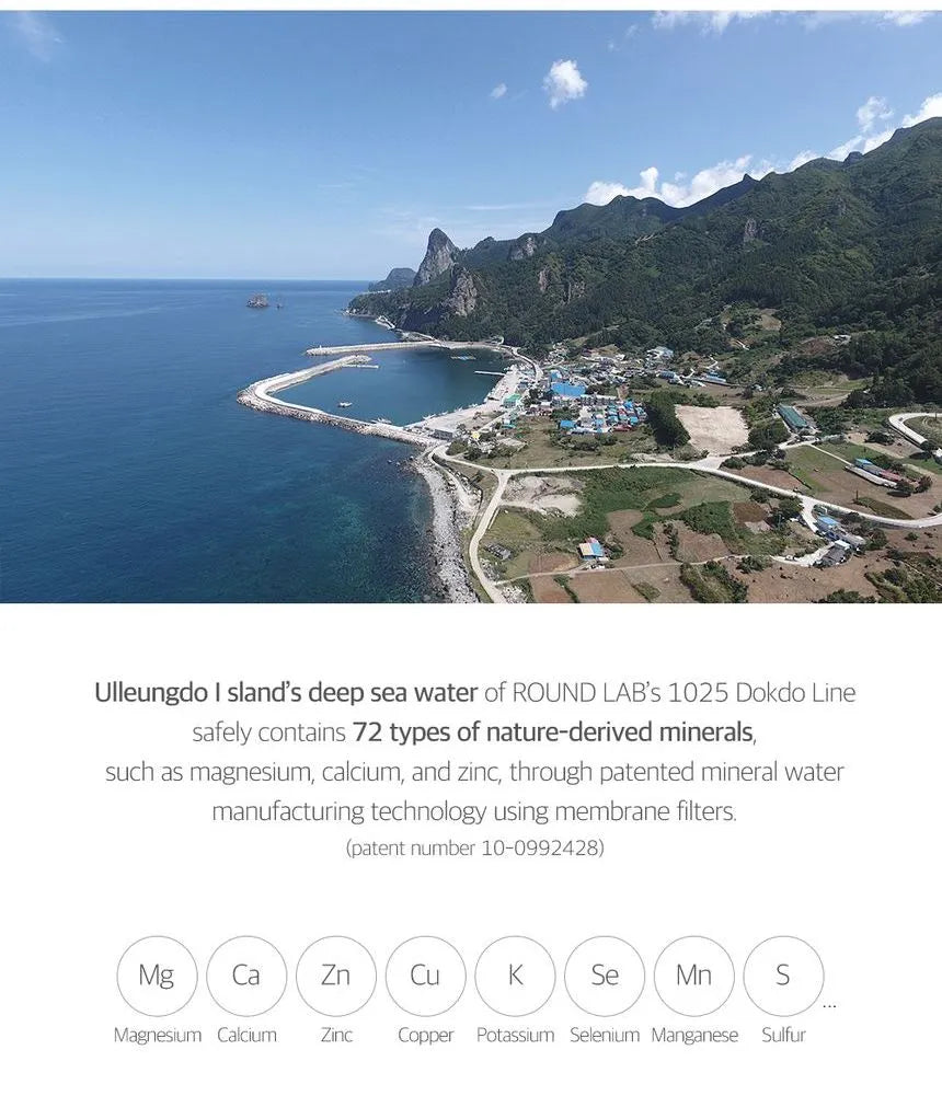 - Deep sea water from Dokdo Island enriched with Minerals helps maintain optimal skin oil-water balance.