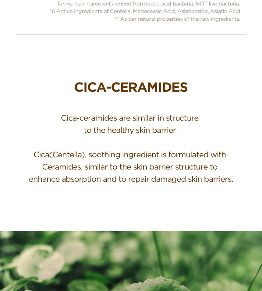 Centella Asiatica Extract, Glycerin, Butylene Glycol, Dipentaerythrityl Hexa C5-9 Acid Esters, 1,2-Hexanediol, Niacinamide, Squalane, Water, Polyglyceryl-3 Distearate, Cetearyl Alcohol, Caprylic/Capric Triglyceride, Betaine, Butyrospermum Parkii (Shea) Butter, Heptyl Undecylenate, Lactobacillus/Centella Asiatica Extract Ferment Filtrate, Glyceryl Stearate, Bakuchiol, Panthenol, Acrylates/C10-30 Alkyl Acrylate Crosspolymer, Palmitic Acid, Tromethamine, Stearic Acid, Glyceryl Stearate Citrate, Carbomer, Ethylhexylglycerin, Adenosine, Macadamia Ternifolia Seed Oil, Sodium Phytate, Sodium Hyaluronate, Hydrogenated Lecithin, Ceramide NP, Glyceryl Acrylate/Acrylic Acid Copolymer, Dextrin, Theobroma Cacao (Cocoa) Extract, Polyglyceryl-10 Myristate, Phytosphingosine, Madecassic Acid, Asiaticoside, Hydrolyzed Extensin, Sucrose Distearate, Asiatic Acid, Lauric Acid, Phytosterols, Hydrolyzed Hyaluronic Acid, Caprylyl Glycol, Acetyl Hexapeptide-8