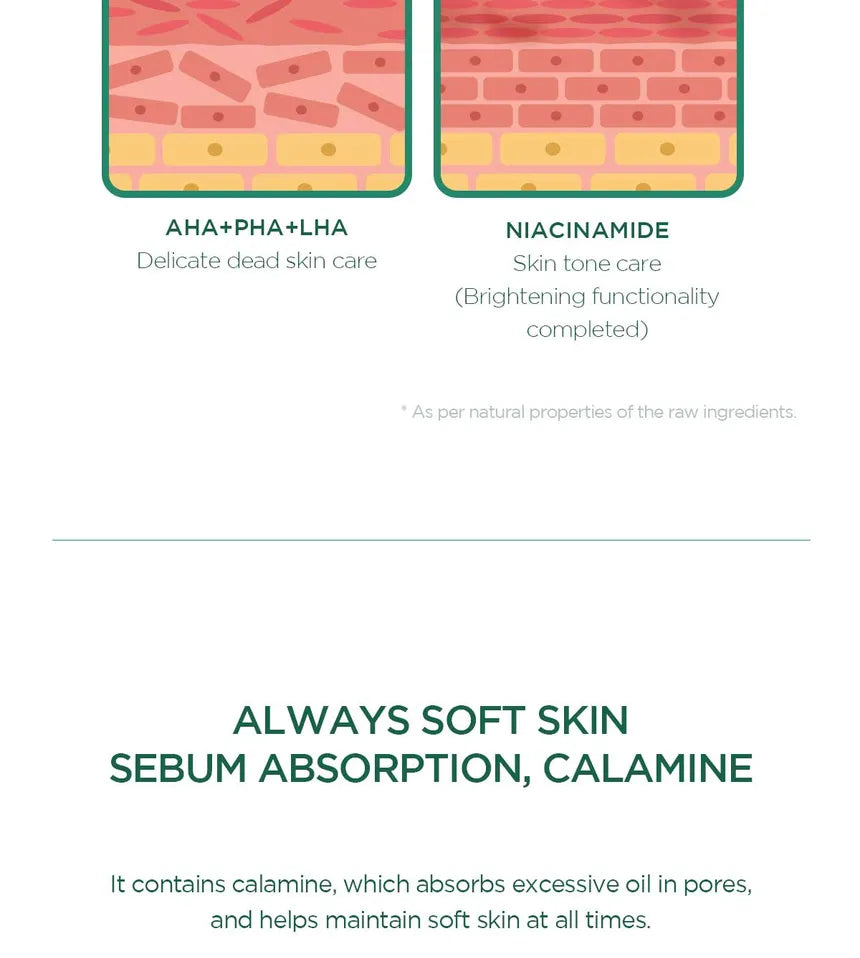 • Infused with AHA, BHA, LHA and Niacinamide to slough off dead skin cells and brighten skin.