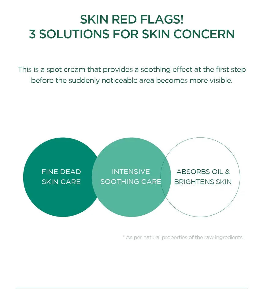 • Spot cream infused with TECA (containing Asiatic Acid, Asiaticoside and Madecassic Acid) calms troubled skin.