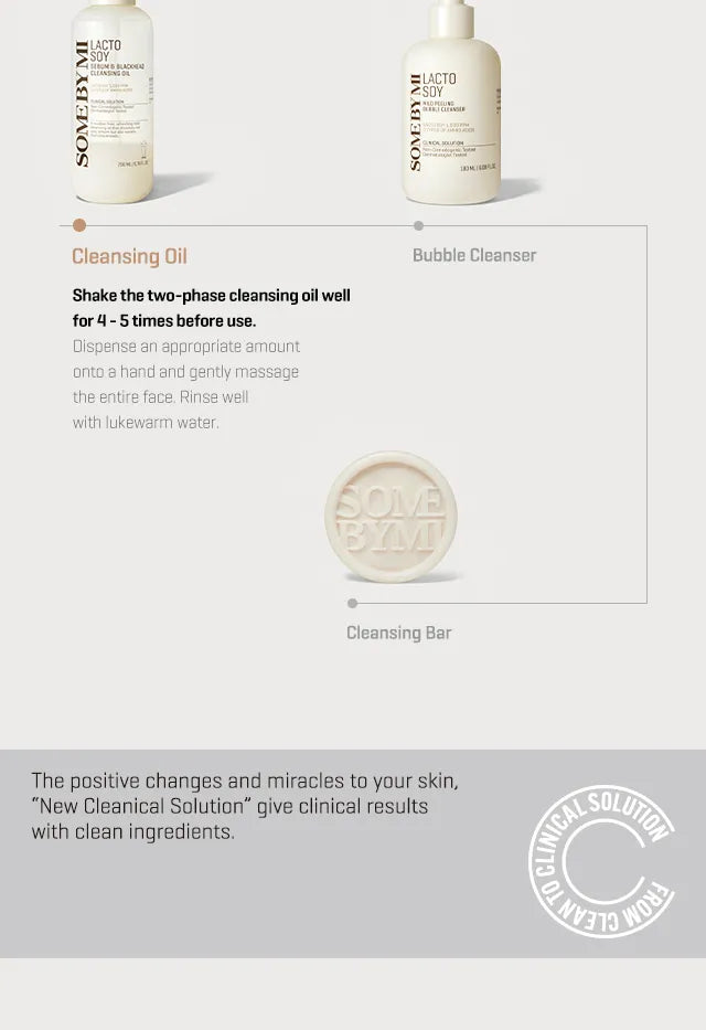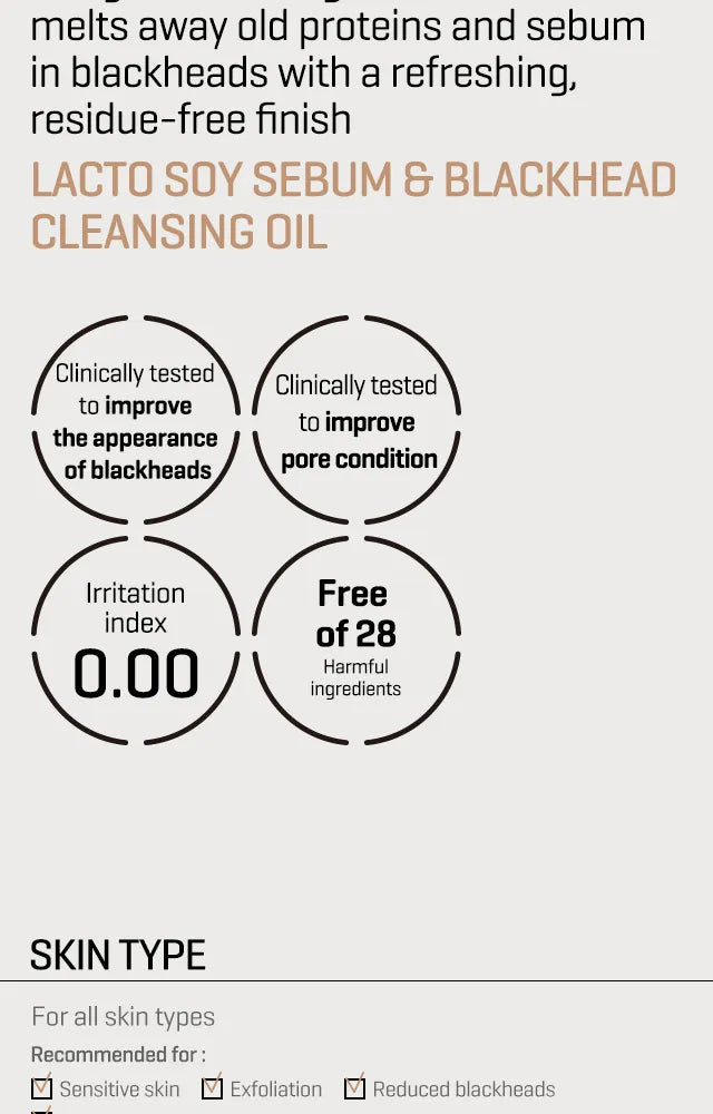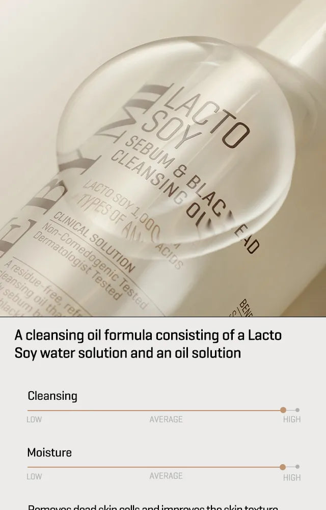 - An ideal combination of vegetable oil and Lacto Soy water in a 8:2 ratio helps melt away the sebums while leaving a refreshing finish at the same time.