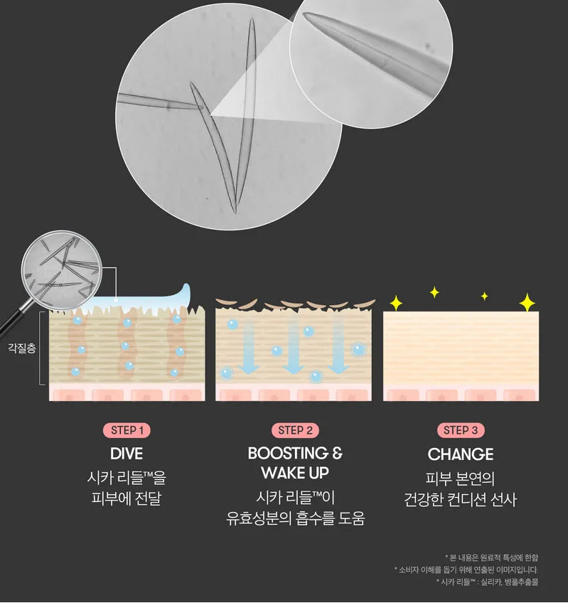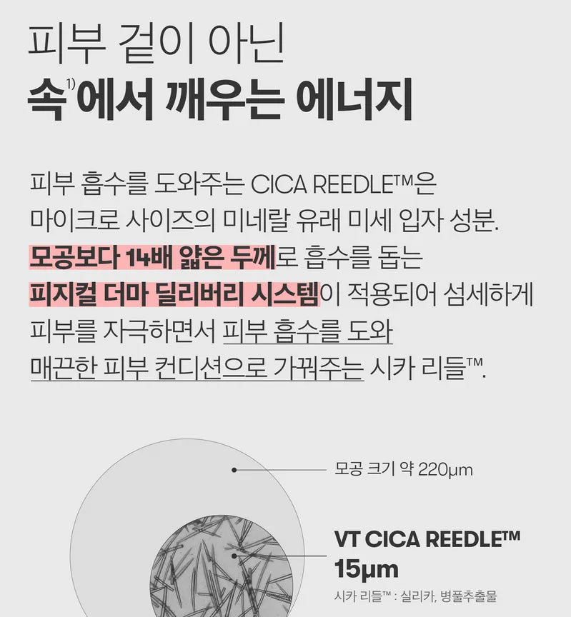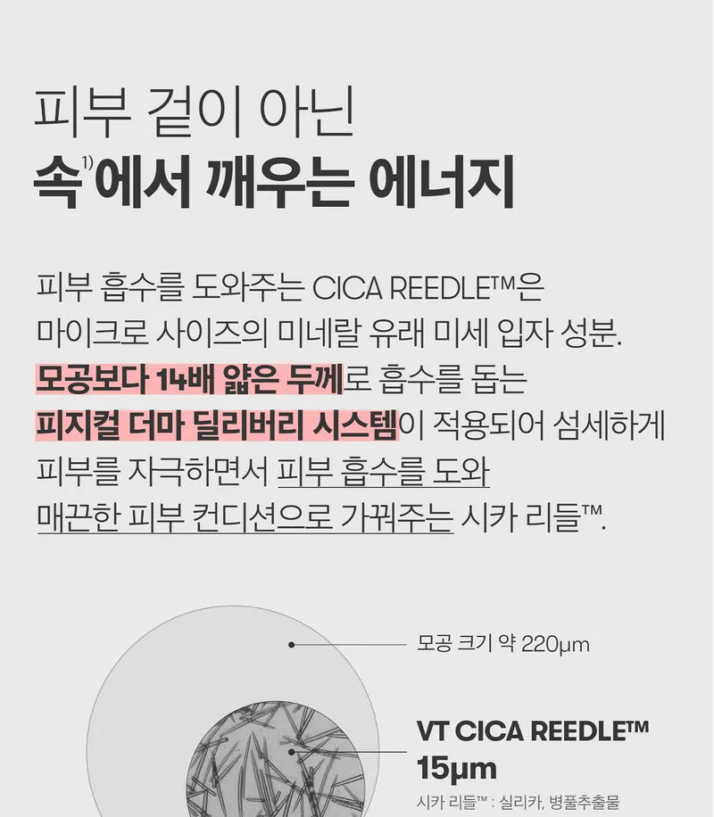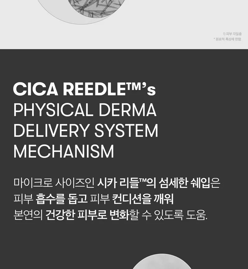 - The delicate design of the micro-sized Cica Reedle facilitates skin absorption and awakens the skin condition to restore healthy skin.