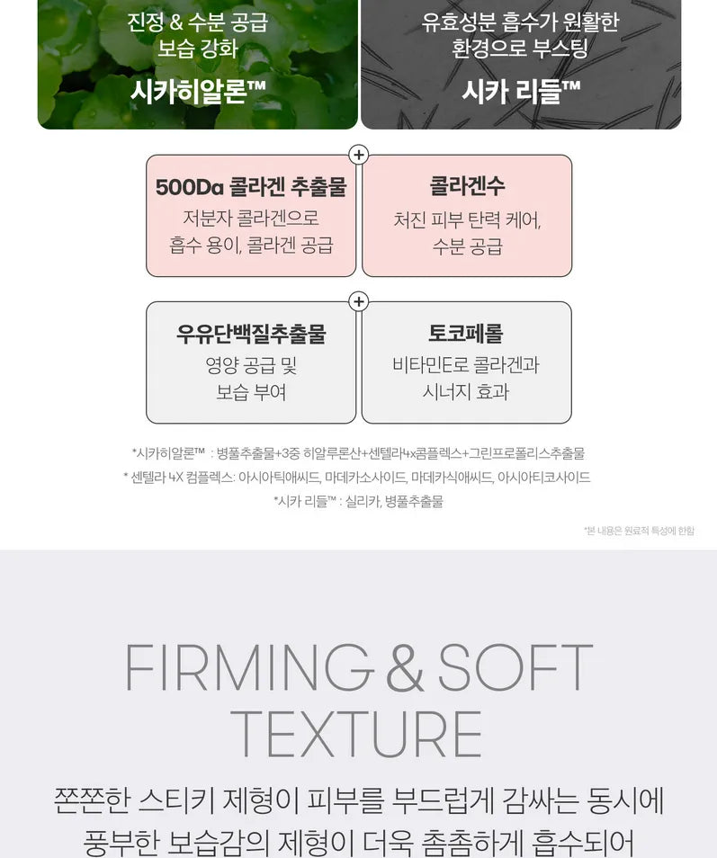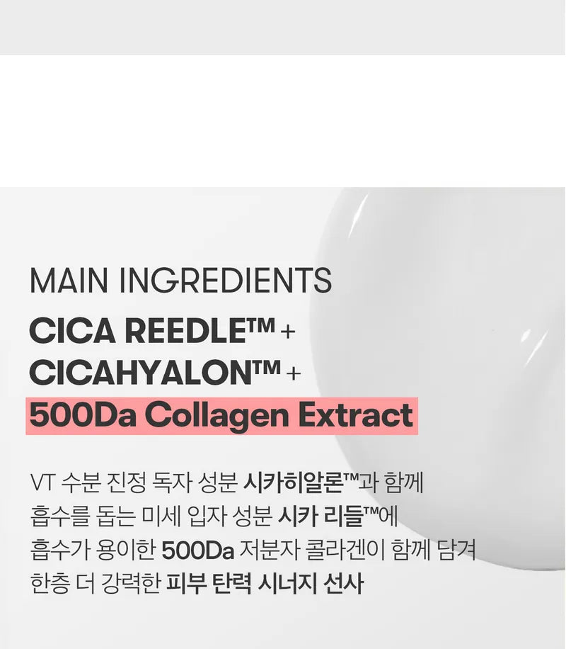 Revitalize skin with this ampoule formulated with VT’s patented ingredients CICAHYALON™ and CICA REEDLE™ to achieve a supple and youthful appearance. Low-molecular collagen is added into the formula to boost skin elasticity and smooth skin texture.