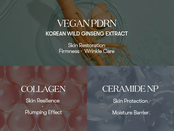 PDRN and ginseng reduce wrinkles and restore elasticity in one swipe.