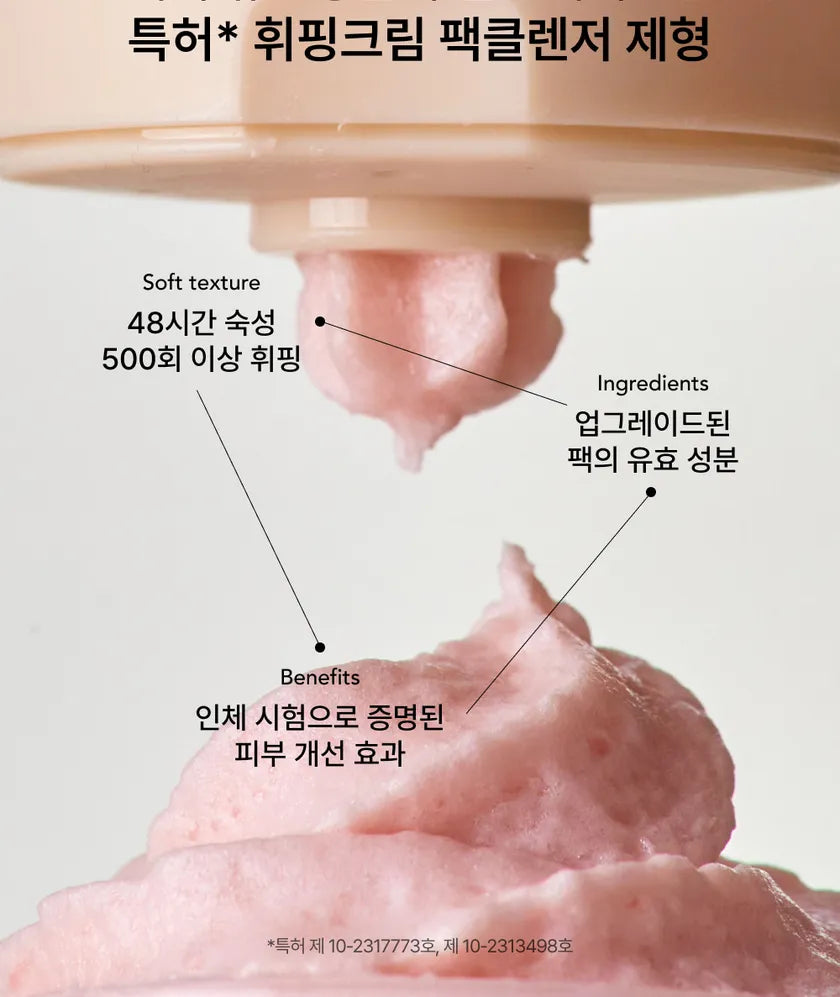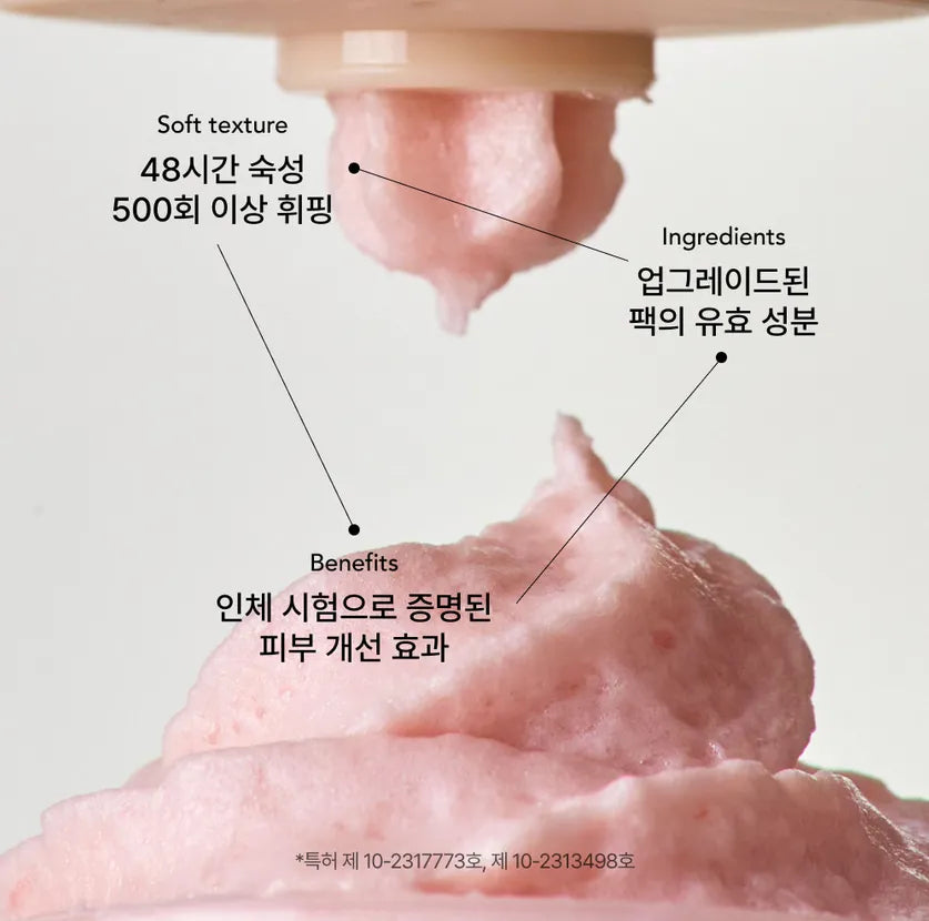 - Patent formula made with more than 500 times of whipping for 48 hours to create a soft whipped cream texture with ultra fine particles that keeps skin clean and hydrated.